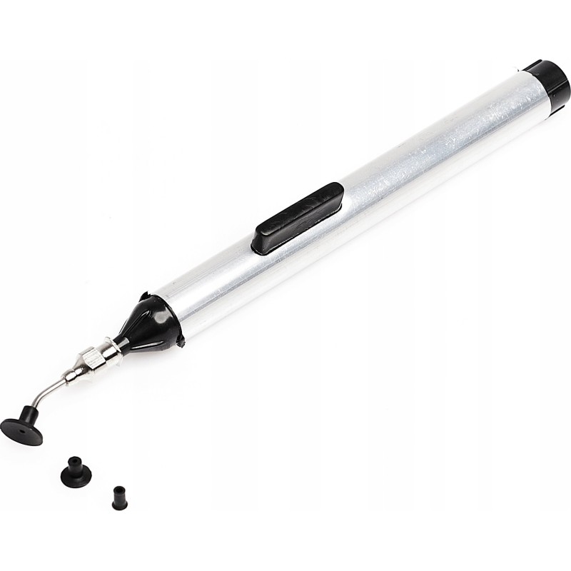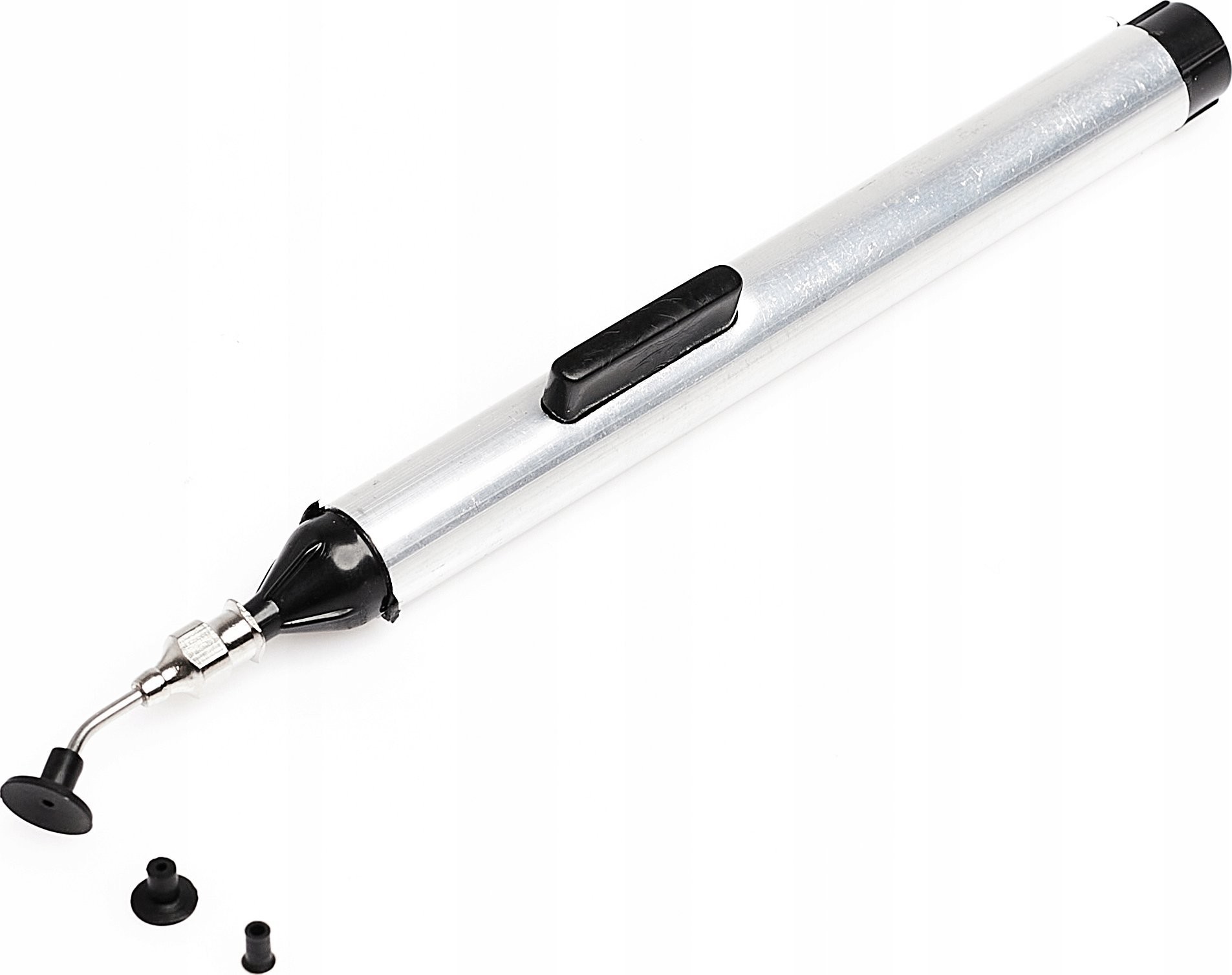 Der Vakuumgreifer dient zum Transportieren kleiner Gegenstände, ohne dass eine Pinzette verwendet werden muss. Er kann zum Transportieren und Platzieren von integrierten Schaltkreisen auf Leiterplatten mit kleinen Gehäusen wie SO, TSSOP, BGA und QFP verwendet werden. Der Unterdruck im Gerät wird durch Drücken eines Knopfes erzeugt. Auf diese Weise fixiert die hochtemperaturbeständige Gummispitze die Bauteile.