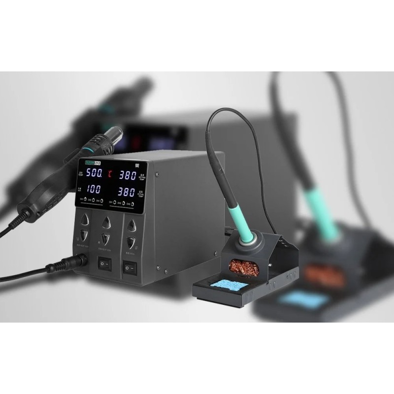 Die Lötstation SUGON 212 ist ein modernes 2-in-1-Gerät, das die Funktionen des Lötkolbens T12 und einer Heißluftstation vereint. Dank fortschrittlicher Technologie profitieren Anwender von einer präzisen Regelung der Temperatur und des Luftstroms, was dieses Gerät zum idealen Werkzeug sowohl für professionelle Werkstätten als auch für Elektronikbegeisterte macht.