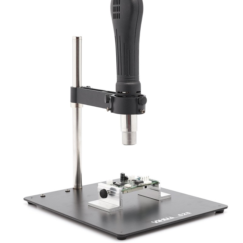 Die Leistung des Geräts beträgt 670 W und die maximale Betriebstemperatur liegt bei 480 °C, was ein effektives Löten ermöglicht. Das Twin-Turbo-System sorgt für einen konstanten Heißluftstrom, was die Lötleistung erhöht.