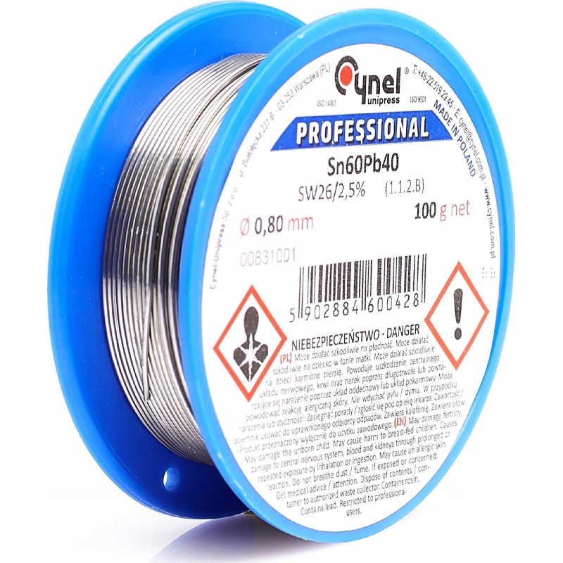 4️⃣ Lötzinn mit Flussmittel Sn60Pb40, 0,80 mm, 100 g Cynel