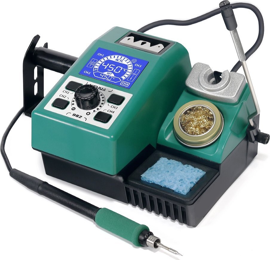 - Präzisions-Lötstation Yihua 982 für Lötkolben mit integriertem Heizelement T210, inklusive Halterung für den Lötkolben, Reinigungsschwamm für die Spitze und Metallspänen