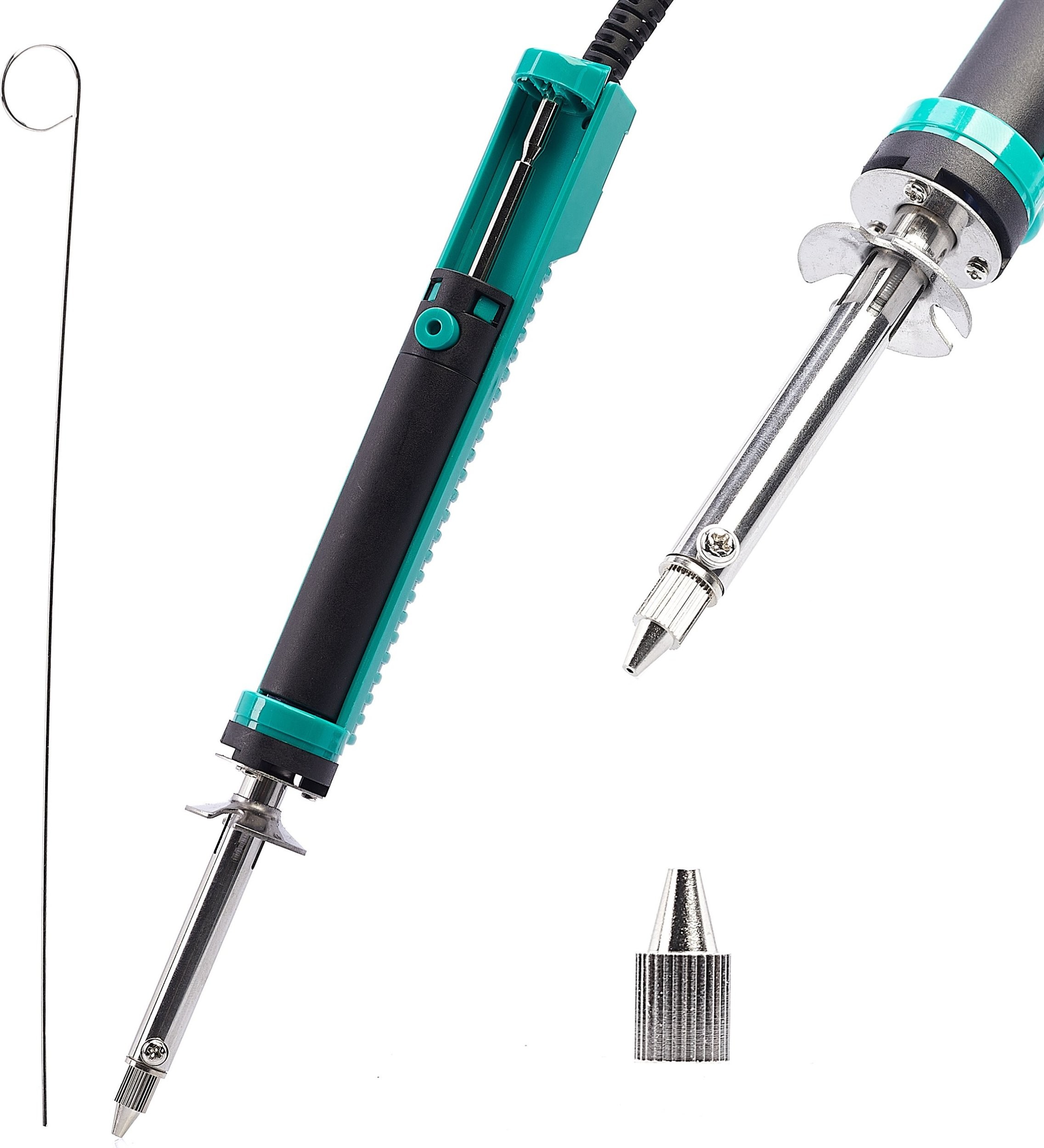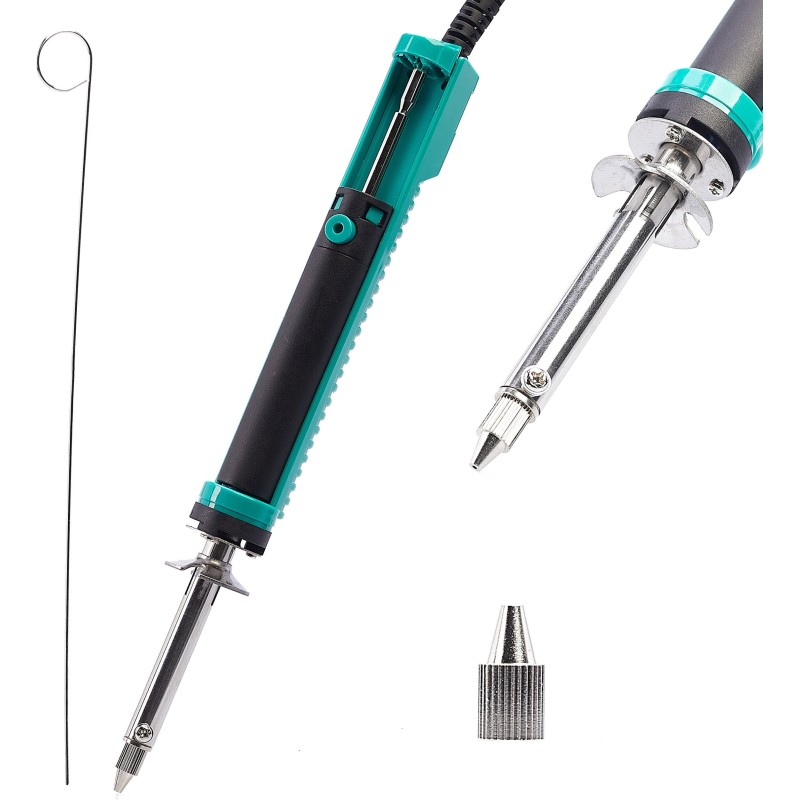 Professioneller Lötabsauger zum Entfernen von Zinn; das Gerät heizt sich sehr schnell auf die für den Betrieb erforderliche Temperatur auf. Die robuste Konstruktion ermöglicht ein sehr effektives Arbeiten mit einer Hand. Ein sehr nützliches Gerät, das das Auslöten von elektronischen Bauteilen erleichtert.