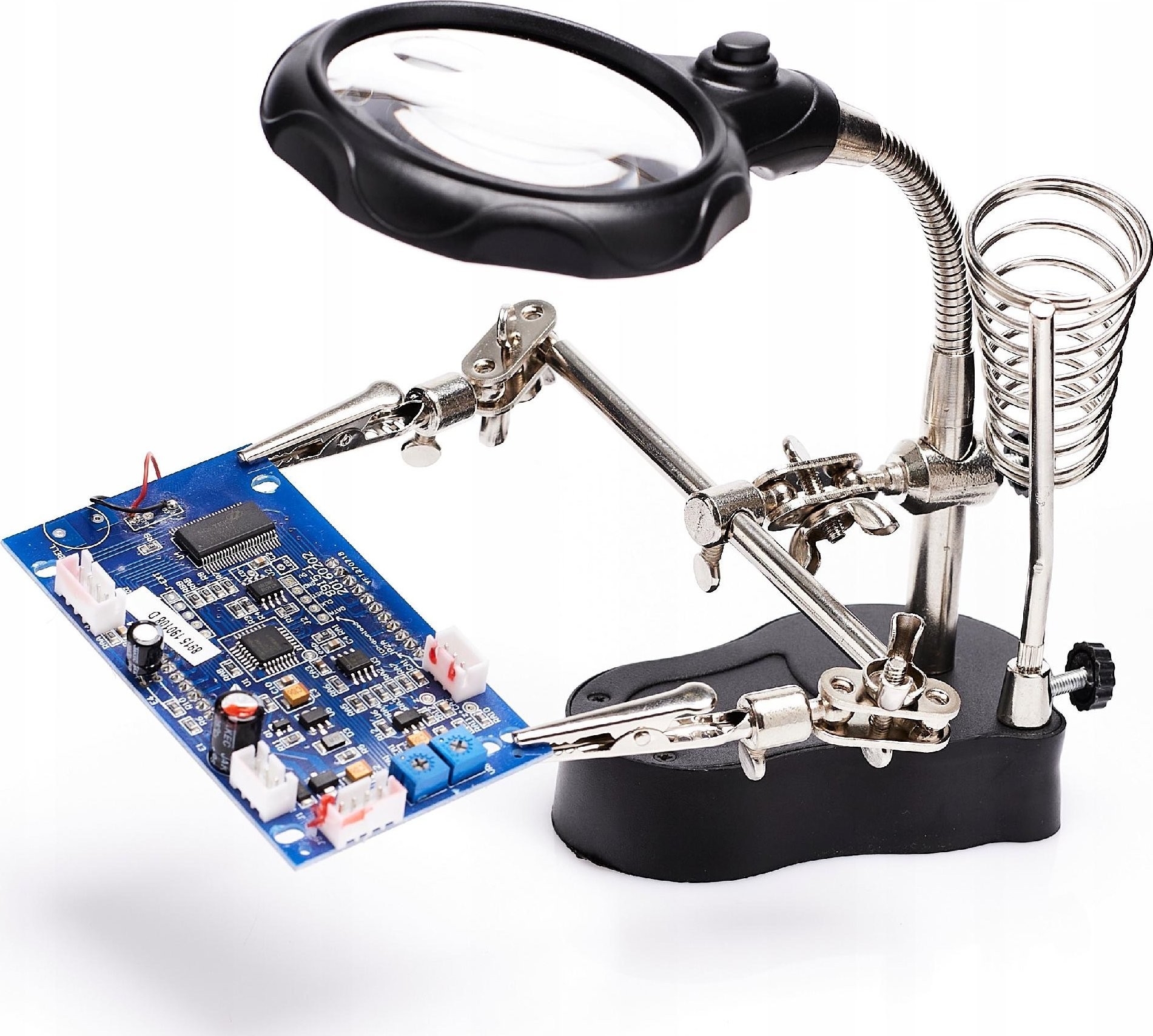 Montagehalterung mit Lupe, LED-Beleuchtung und Halterung für den Lötkolben