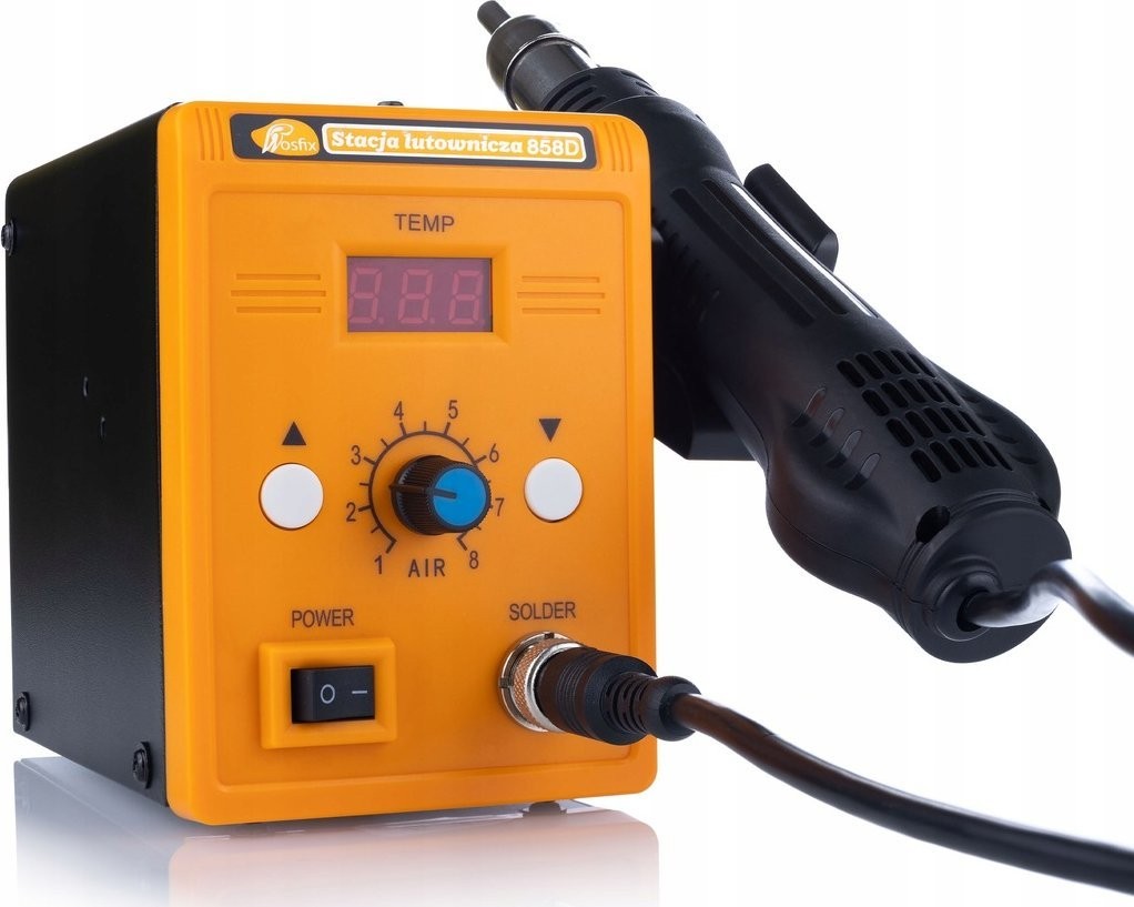 2️⃣ Heißluft-Lötstation Rosfix 858D – Das Modell Rosfix 858D ist eine Heißluft-Lötstation, die eine stufenlose Regelung von Temperatur und Luftstrom bietet. Sie ist vielseitig einsetzbar und eignet sich ideal zum Löten, Entlöten und für andere Aufgaben im Bereich der Elektronikbearbeitung. Das integrierte Display erleichtert die Überwachung der Temperatur- und Luftstromeinstellungen, was eine präzise Anpassung der Betriebsparameter ermöglicht.
