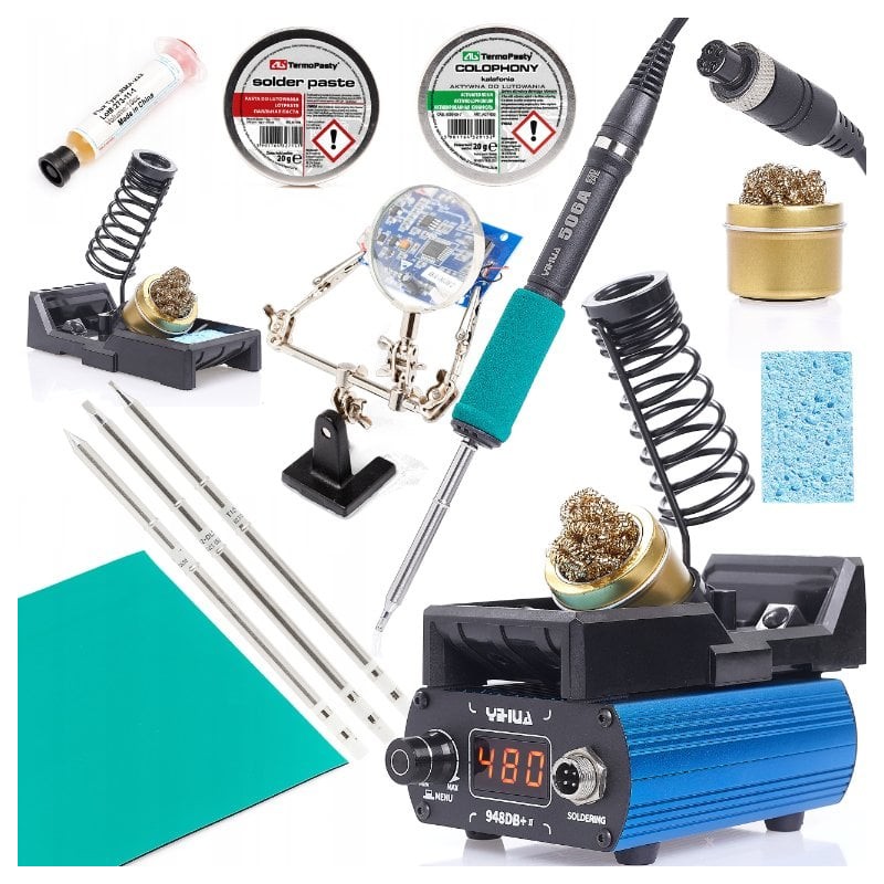 Lötstation Yihua 948DB+II mit 3 T12-Spitzen, umfangreichem Zubehörset und Flussmittel