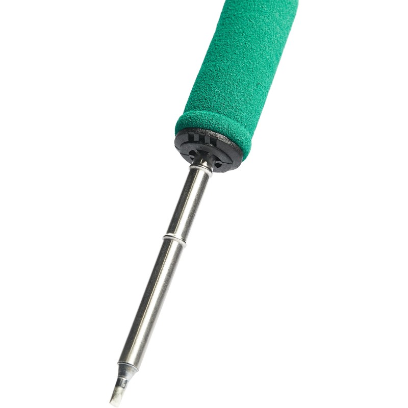 Die Station ist mit einem Schnappverschluss-System für die Spitzenbefestigung ausgestattet, das einen blitzschnellen Austausch der Spitzen ermöglicht. Dadurch kann der Anwender das Gerät leicht an verschiedene Lötarbeiten anpassen, was den Arbeitskomfort und die Effizienz erheblich steigert.