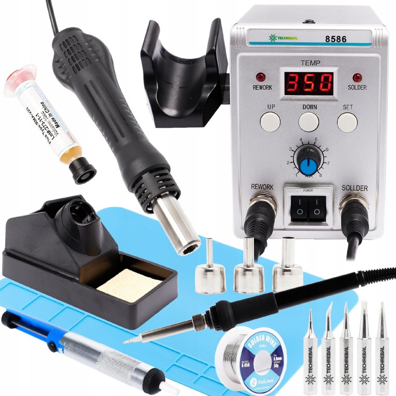 Techrebal 2-in-1-Lötstation HOTAIR Lötkolben 8586 Lötspitzen