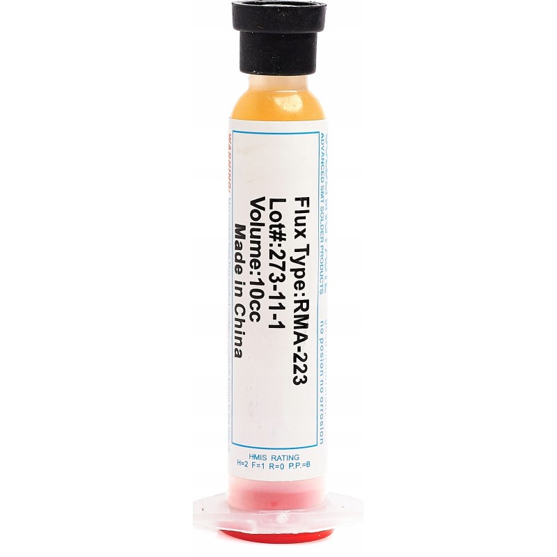 Hochwertiges Lötflussmittel, leicht zu verteilen, mit hoher Intensität und Benetzbarkeit der Lötfläche. Beeinträchtigt die Eigenschaften von IC- und PCB-Bauteilen nicht und erfordert keine Reinigung nach dem Lötvorgang (NO CLEAN-Typ). Hat eine gelartige Konsistenz, was die Anwendung erleichtert. Das Flussmittel wird auch zur Reparatur beschädigter Bälle sowie zum Ein- und Auslöten von z. B. BGA-Bausteinen in Mobiltelefonen verwendet.
