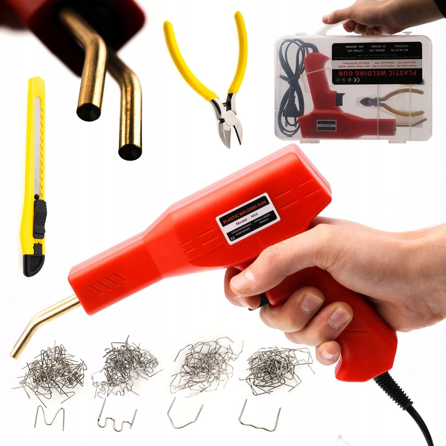 Es handelt sich um ein umfassendes Werkzeugset, das ein effektives und vielseitiges Verschweißen von Kunststoffen ermöglicht. Es umfasst verschiedene Arten von Schweißspitzen in unterschiedlichen Formen und für unterschiedliche Anwendungen, Werkzeuge zum Schneiden und Vorbereiten von Materialien sowie eine Bedienungsanleitung, die für die effektive Ausführung von Arbeiten im Zusammenhang mit der Herstellung und Reparatur von Kunststoffteilen erforderlich sind.