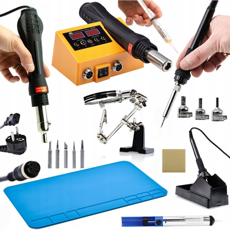 1️⃣ 2-in-1-Lötstation Rosfix Orange Husky OH660: Das Hauptwerkzeug, das ein Heißluftlötmodul sowie ein 60-W-Lötspitzenmodul enthält.