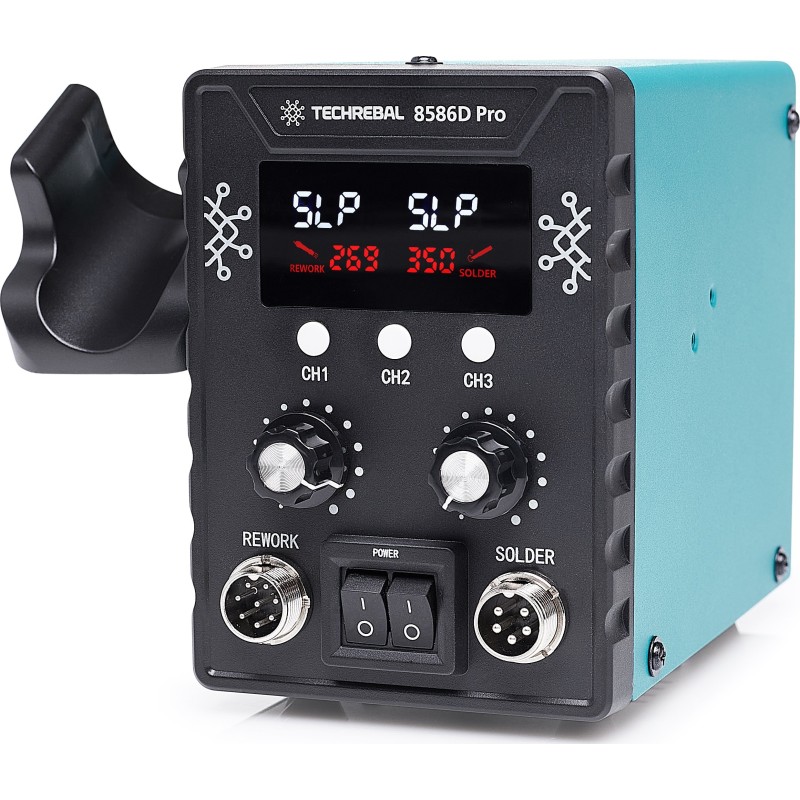 Der TechRebal 8586 2-in-1-Lötkolben ist ein vielseitiges Werkzeug, das für Profis und Elektronikbegeisterte entwickelt wurde. Er bietet die Möglichkeit zum Löten und zur Verwendung von Heißluft in einem kompletten Set. Das Gerät ist mit einem Präzisionslötkolben und einer Heißluftfunktion ausgestattet, was sowohl das Löten als auch die Reparatur elektronischer Bauteile ermöglicht. Dank der einfachen Bedienung und der außergewöhnlichen Vielseitigkeit eignet sich diese Station ideal für die Reparatur und Montage elektronischer Schaltungen sowie für das präzise Entfernen und Austauschen von Bauteilen. Die Station 8586 besticht vor allem durch ihre beeindruckende Qualität. Sie ist aus hochwertigem Aluminium gefertigt, was ihr ein professionelles und elegantes Aussehen verleiht.