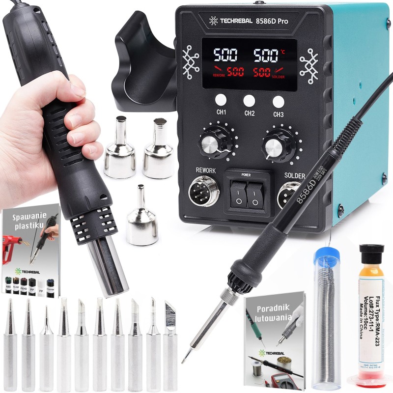 2-in-1-Lötstation TECHREBAL 8586 + Lötpaste RMA223 + 5 Lötspitzen + Zinn