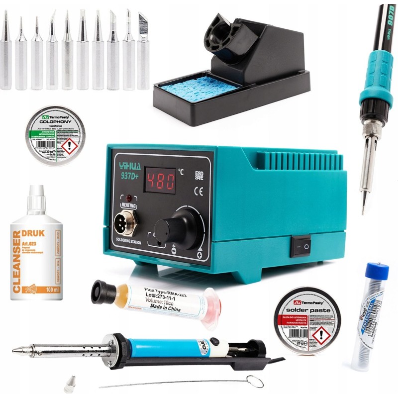 Die 937D+ eignet sich sowohl für Werkstätten als auch für anspruchsvolle Anwender. Die Station verfügt über eine Temperaturregelung im Bereich von 200 °C bis 480 °C. Das Gerät verfügt über eine Temperaturstabilisierung, d. h. die eingestellte Temperatur wird während des Lötvorgangs konstant gehalten.