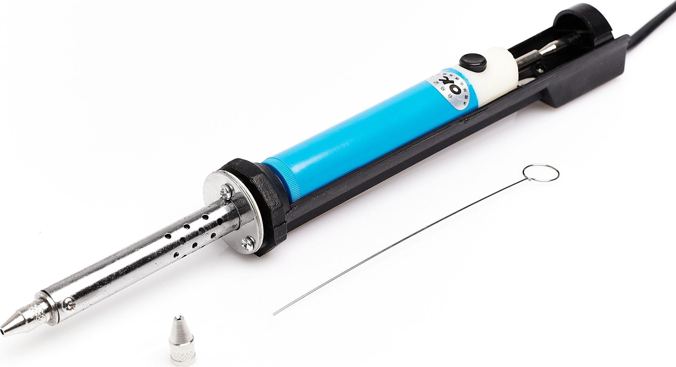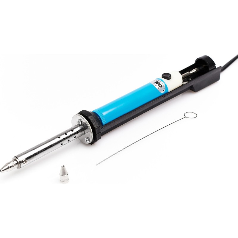 Elektrischer Zinnabsauger mit Wischer und zusätzlicher Spitze Professioneller Lötabsauger zum Entfernen von Zinn; das Gerät heizt sich sehr schnell auf die für die Arbeit erforderliche Temperatur auf. Die robuste Konstruktion ermöglicht ein sehr effektives Arbeiten mit einer Hand. Ein sehr nützliches Gerät, das das Auslöten von elektronischen Bauteilen erleichtert.