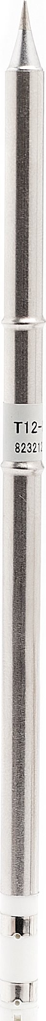 Die Spitzen der Serie T-12 sind mit einem Heizelement und einem Temperatursensor integriert. Somit bilden das Heizelement und die Lötspitze ein einziges Bauteil, das als Spitze bezeichnet wird. Bitte beachten Sie, dass der Temperatursensor (Thermoelement) sehr nahe an der Lötspitze der Spitze angeordnet ist, was eine sehr genaue Temperaturmessung während des Lötvorgangs gewährleistet. Die Spitzen der Serie T12 zeichnen sich durch eine schnelle Aufheizung aus (Erreichen einer Temperatur von 300 °C in weniger als 30 Sekunden). Die Spitze ist mit elektrischen Kontakten versehen. Im Lötkolben wird die T12-Spitze per Schnappverschluss befestigt. Die kompakte Bauweise der T12-Spitzen ermöglicht einen Austausch im heißen Zustand (unter Verwendung einer hitzebeständigen Unterlage, mit der die heiße Spitze angefasst wird).