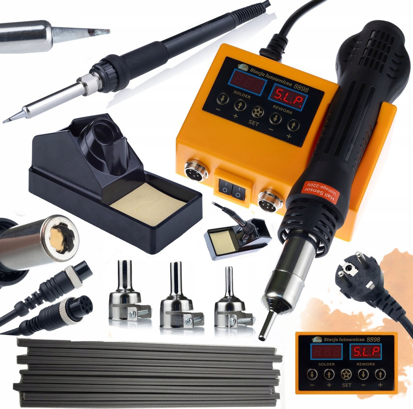 Rosfix 2-in-1-Lötstation (Heißluft und 900M) Rosfix Orange Husky OH660 Serie Electric S + Kunststoffschweißdraht PP, schwarz, 10 Stück, 20 cm
