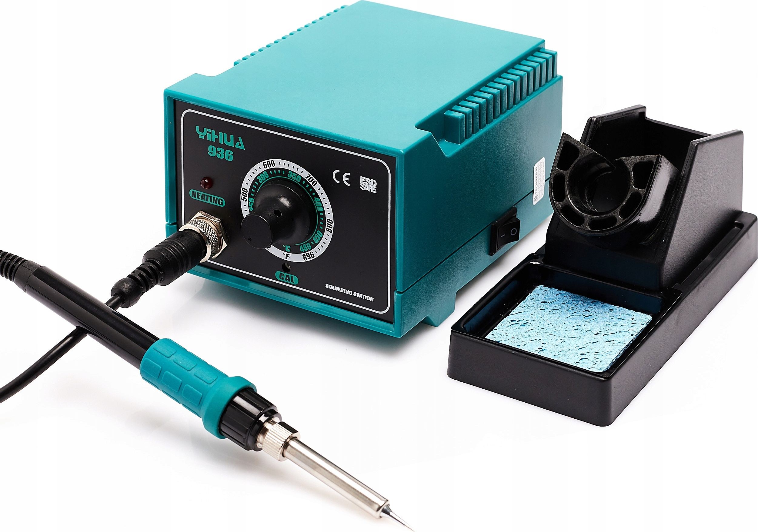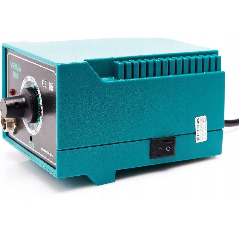 Lötstation im Set mit dem Lötkolben 907A mit einer sehr hohen Spitzenleistung von 60 W, dank der die Spitze in kurzer Zeit auf die gewünschte Temperatur erhitzt werden kann. Sie ist außerdem mit einer ESD-Sicherung ausgestattet, die sie vor Überhitzung schützt. Die 936 ist das zuverlässigste und bewährteste Modell, ideal für den Hobbygebrauch sowie für kleine Werkstätten – die perfekte Station, um Ihre ersten Schritte im Löten zu machen. Die Station verfügt über eine Temperaturregelung im Bereich von 200 °C bis 480 °C. Der Aufbau der Station ist unkompliziert, weshalb das Gerät praktisch störungsfrei ist. Die Station verfügt über eine Temperaturstabilisierung, d. h. die eingestellte Temperatur wird während des Lötvorgangs konstant gehalten.