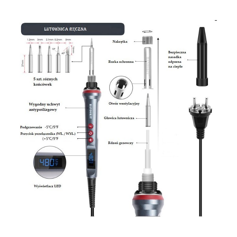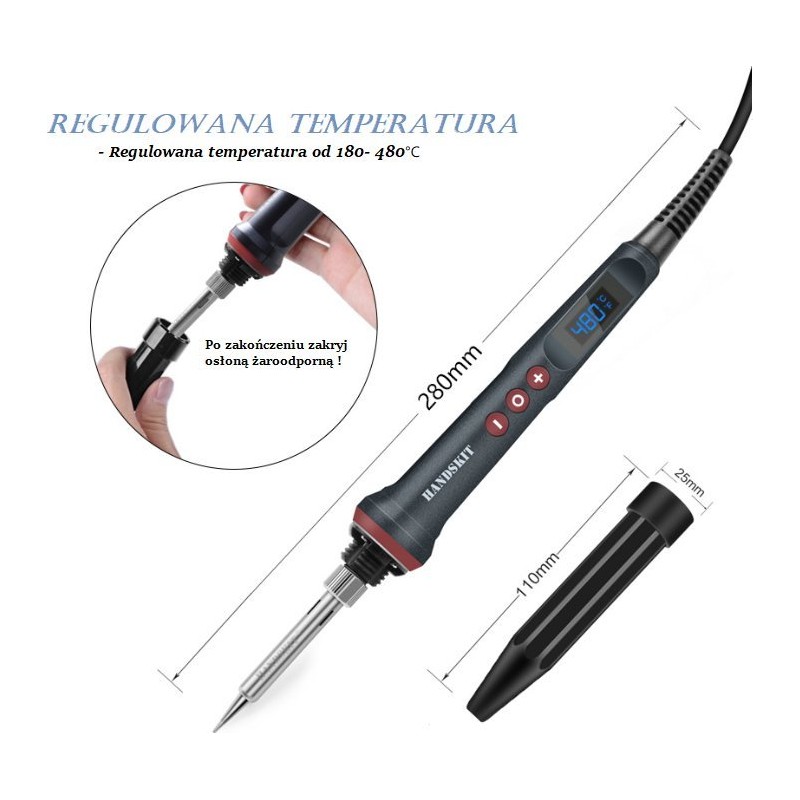 Der präzise elektrische Lötkolben mit einer Temperaturregelung bis 480 °C eignet sich ideal zum Löten aller elektrischen Bauteile. Er ist für Arbeiten mit bleihaltigem und bleifreiem Lot ausgelegt. Dank der leicht austauschbaren Lötspitze lässt er sich schnell an Ihre Bedürfnisse anpassen. Ausgestattet mit einem LCD-Display, auf dem die Temperatur in Grad Celsius angezeigt wird. Erfüllt die Erwartungen von Heimwerkern und Profis. Der Lötkolben besteht aus hochtemperaturbeständigen Materialien. Er ist