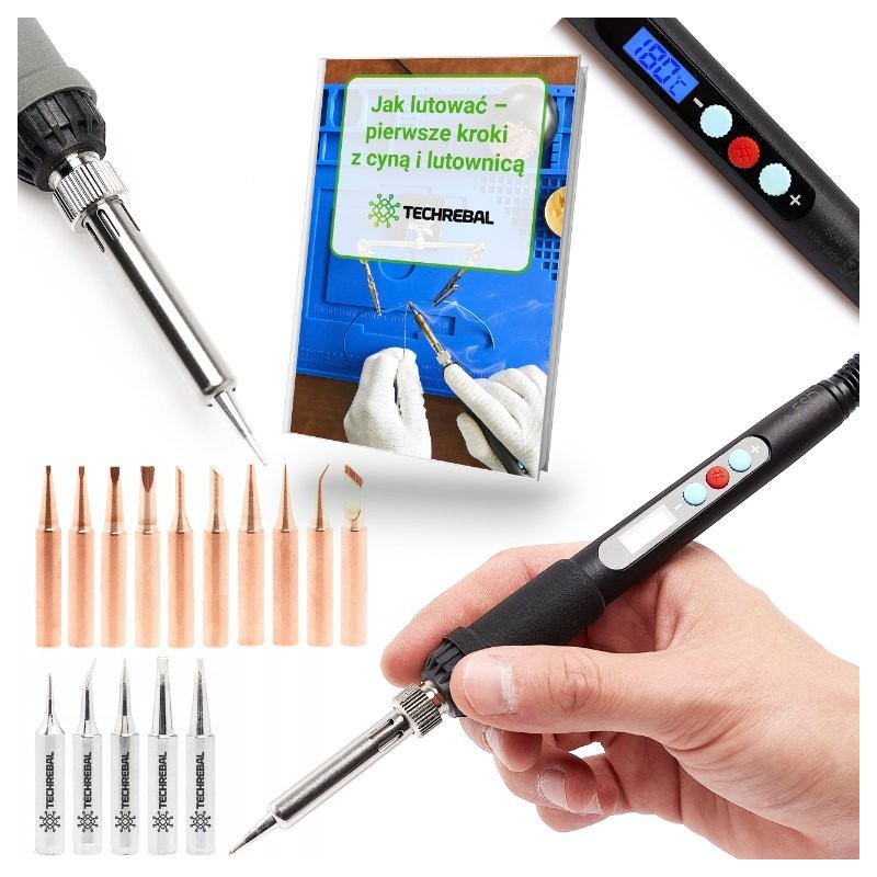 Im Lieferumfang sind 15 Spitzen enthalten, darunter 10 Kupferspitzen 900M und 5 Techrebal-Aluminiumspitzen. Diese Auswahl an Spitzen macht den Lötkolben zu einem vielseitigen Werkzeug, das vielfältigen Lötanforderungen gerecht wird.
