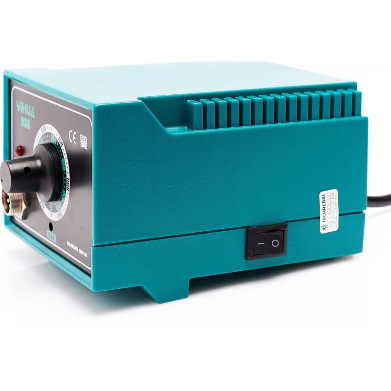 Lötstation im Set mit dem Lötkolben 907A mit einer sehr hohen Spitzenleistung von 60 W, dank der die Spitze in kurzer Zeit auf die gewünschte Temperatur erhitzt werden kann. Sie ist außerdem mit einer ESD-Sicherheitsvorrichtung ausgestattet, die sie vor Überhitzung schützt. Das Modell 936 ist das zuverlässigste und bewährteste Modell, ideal für den Hobbygebrauch sowie für kleine Werkstätten – die perfekte Station, um Ihre ersten Schritte im Löten zu machen. Die Station verfügt über eine Temperaturregelung im Bereich von 200 °C bis 480 °C. Der Aufbau der Station ist unkompliziert, weshalb das Gerät praktisch störungsfrei ist. Die Station verfügt über eine Temperaturstabilisierung, d. h. die eingestellte Temperatur wird während des Lötvorgangs konstant gehalten.