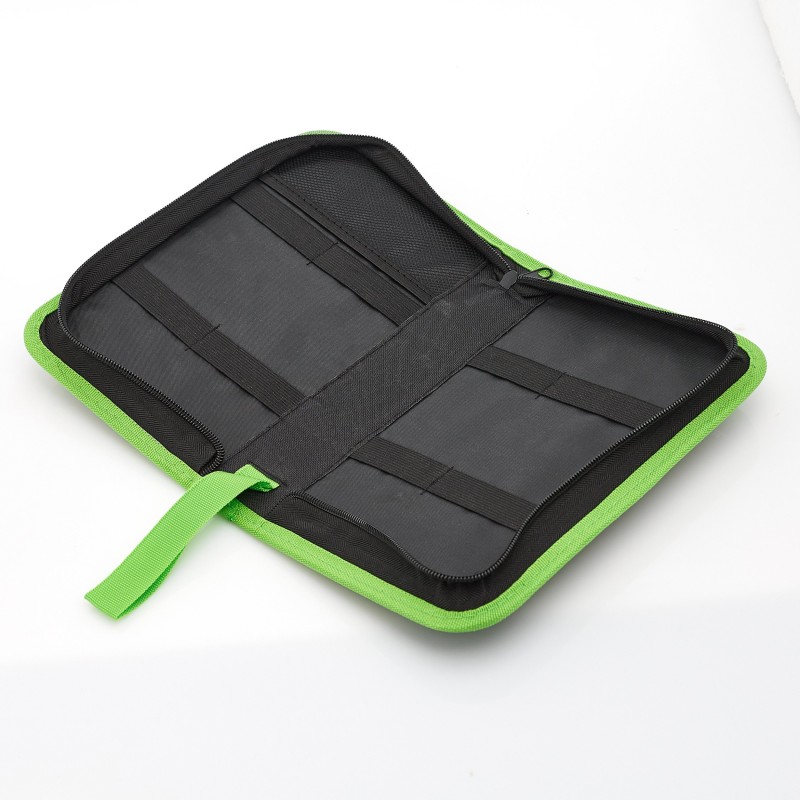 Das Etui in Form eines „Stiftebeutels“ sorgt für eine bequeme Aufbewahrung und den Transport der Werkzeuge. So sind alle Zubehörteile immer griffbereit, was die Arbeit und die Organisation in der Werkstatt erleichtert.