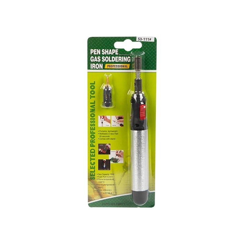 Multifunktionaler Gaslötkolben mit komfortablem Griff und einem 15-ml-Gasbehälter.