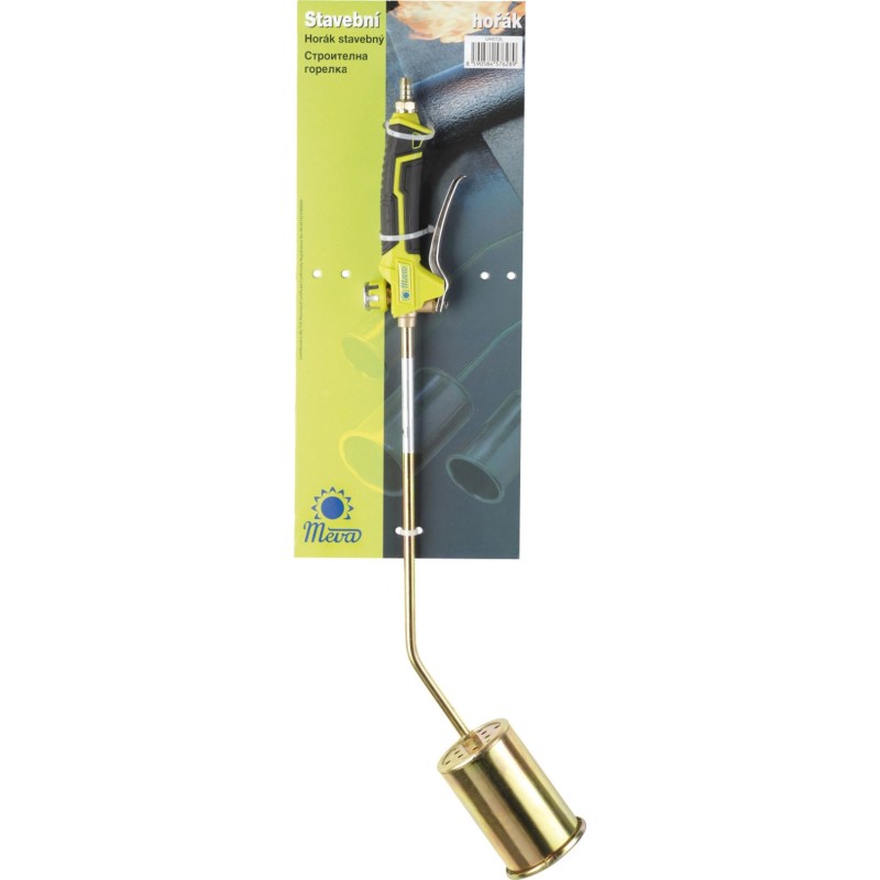 hochwertiges Produkt des tschechischen Marktführers für Gasgeräte und -zubehör, der Firma MEVA, die seit 1898 besteht. Ein äußerst langlebiger und leistungsstarker Gasbrenner für den Bau, der bei Dachdeckerarbeiten, im Steinmetzhandwerk oder zum Anheizen und Schweißen eingesetzt wird. Der Gasbrenner kann mit G30-Gas, also Propan-Butan aus einer handelsüblichen LPG-Flasche, betrieben werden. Der Gaszufuhrschlauch wird mit Schlauchschellen befestigt. Der Dachgasbrenner mit einer Leistung von 28 kW ist mit einem praktischen Griff mit Drehknopf zur Regulierung des Gasdurchflusses (nach dem Aufdrehen strömt das Gas, ohne dass der Auslöser gedrückt gehalten werden muss) sowie mit einem Hebel ausgestattet, mit dem der gesamte Durchfluss geöffnet wird.