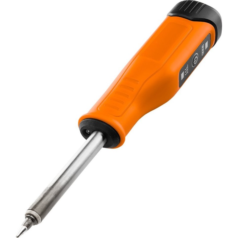 Der mobile kabellose 4-V-Lötkolben der Marke NEO richtet sich an Profis und Heimwerker, die ein kompaktes Gerät mit großem Leistungsspektrum suchen. Er wird akkubetrieben, wodurch Arbeiten an schwer zugänglichen Stellen und in Bereichen ohne ständigen Zugang zum Stromnetz möglich sind. Er zeichnet sich durch einfache Bedienung aus.