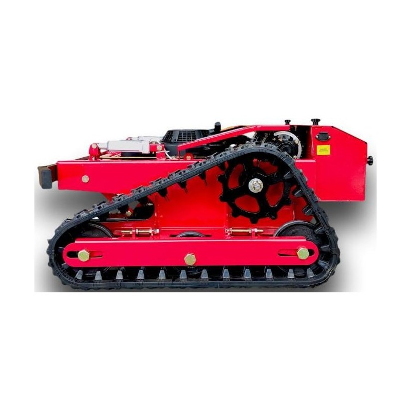 Der Mäher verfügt über einen Raupenantrieb, der für bessere Traktion und Stabilität auf unebenem Gelände sorgt. Durch den niedrigen Schwerpunkt lässt sich das Gerät leicht manövrieren, was besonders unter schwierigen Geländebedingungen wichtig ist.