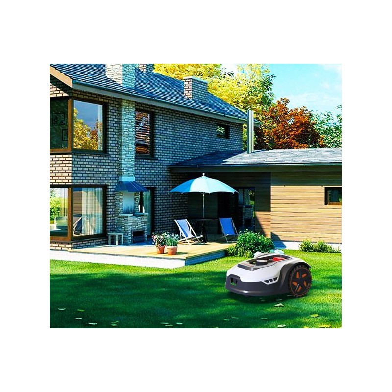 Das mit einem Regensensor ausgestattete Gerät ist in der Lage, Regen zu erkennen. Es unterbricht dann den Betrieb und kehrt zu seiner Ladestation zurück, um ein mögliches Abtragen des Rasens zu verhindern. Der Roboter nimmt den Betrieb wieder auf, sobald sich das Wetter bessert.