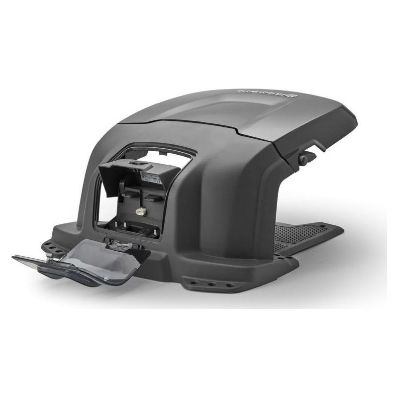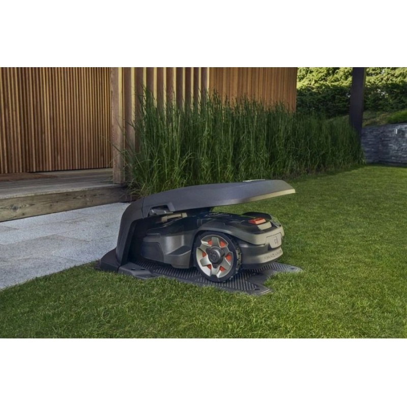 Garage-Häuschen. Der Husqvarna Automower® wurde für den Einsatz unter allen Bedingungen entwickelt. Um sein stilvolles Aussehen zu bewahren, empfiehlt es sich, eine Abdeckung zu wählen, die ihn vor Regen und Sonne schützt. Der klappbare obere Teil erleichtert den Zugang zur Tastatur und zum Display des Mähers während des Ladevorgangs. Alle Kabel sind über eine Klappe an der Rückseite zugänglich.