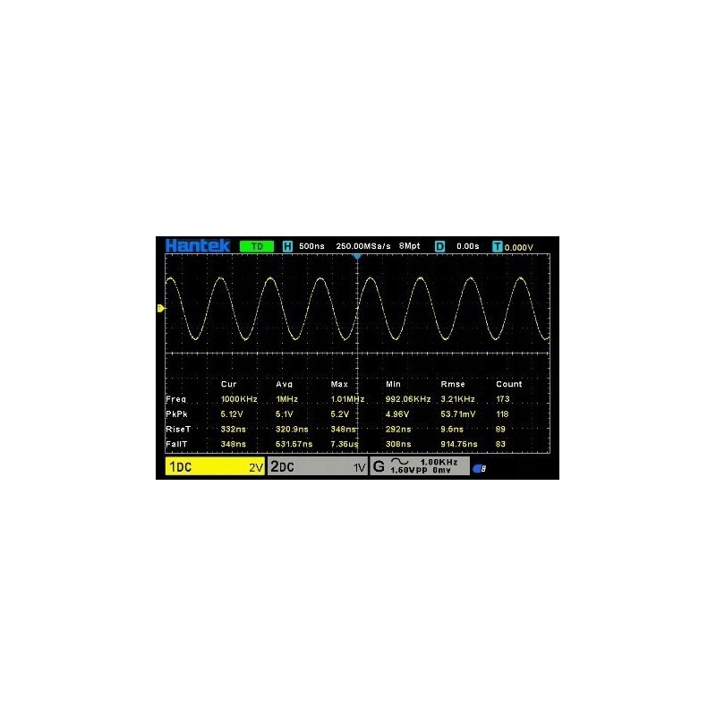 Die neue DSO2000-Oszilloskop-Serie von Hantek: Das DSO2C10 ist ein digitales Oszilloskop mit zwei Eingangskanälen, einer Bandbreite von 100 MHz, einer Abtastrate von 1 GSa/s und einem Speicher von 8 M. Die Steuerungssoftware des Oszilloskops ermöglicht die automatische Einstellung (AUTOSET), die automatische Messung von 32 Spannungs-Zeit-Parametern, die Dekodierung serieller Busse, die FFT-Analyse, den Betrieb im X-Y-Modus, die Speicherung von Kurven sowie die Kommunikation mit einem PC. Es unterstützt SCPI-Fernsteuerungsbefehle.