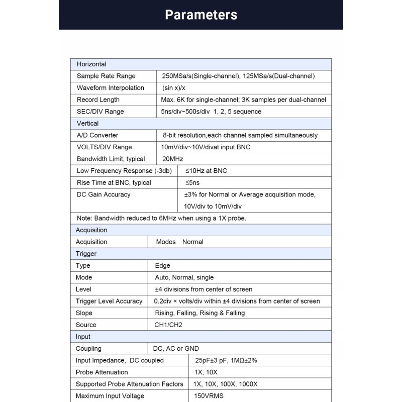 Technische Daten des digitalen Oszilloskops Hantek 2C42