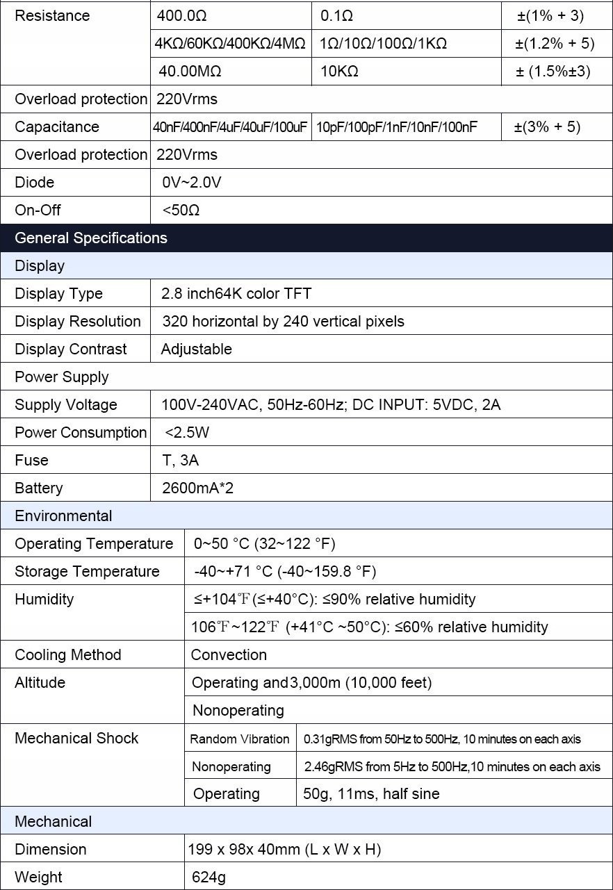 Das Gerät ist mit einem Digitalmultimeter (DMM) mit einer maximalen Anzeige von 4000 ausgestattet, was genaue Messungen von Spannung, Strom und Widerstand ermöglicht. Dadurch wird der Hantek 2C42 zu einem vielseitigen Werkzeug, das vielfältige Messanforderungen erfüllt.