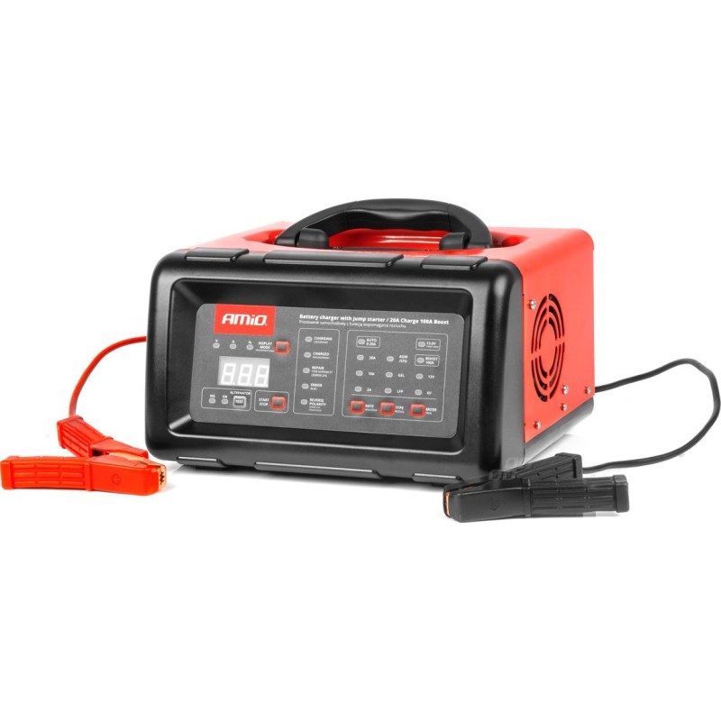 AMiO Digitaler Ladegerät mit Starthilfe-Funktion (Booster Jump Starter) 20 A, 6 V, 12 V, AMiO-04057