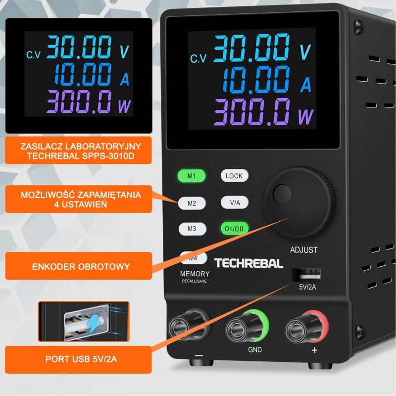 Techrebal SPPS-3010D Laborstromversorgung 30 V, 10 A, USB, Speicher, Präzisionsausführung