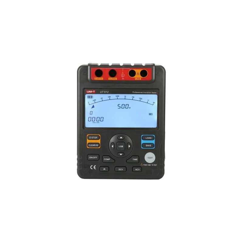 Das Isolationswiderstandsmessgerät UNI-T UT512 ist ein digitales Messgerät, das sowohl für Elektroniker als auch für Elektriker konzipiert ist. Es ermöglicht die Messung hoher Widerstände bis zu 100 GOhm bei einer Prüfspannung von 2500 V. Unter den zahlreichen Zusatzfunktionen sind insbesondere der Dielektrizitätsabsorptionstest, die Polarisationsindexierung sowie die Vergleichsfunktion hervorzuheben. Dieses Modell entspricht den Anforderungen der Norm IECG1010. MESSBEREICHE Isolationswiderstand Für Prüfspannungen: • 500 V: 0,5 MOhm ~ 5 GOhm • 1000 V: 2 MOhm ~ 10 GOhm • 1500 V: 5 MOhm ~ 20 GOhm • 2500 V: 10 MOhm ~ 100 GOhm Genauigkeit: • 100 kOhm ~ 10 MOhm ±(3 % + 5) • 100 MOhm ~ 10 GOhm ±(5 % + 5) • 10 GOhm ~ 100 GOhm ±(10 % + 5) Kurzschlussstrom:
