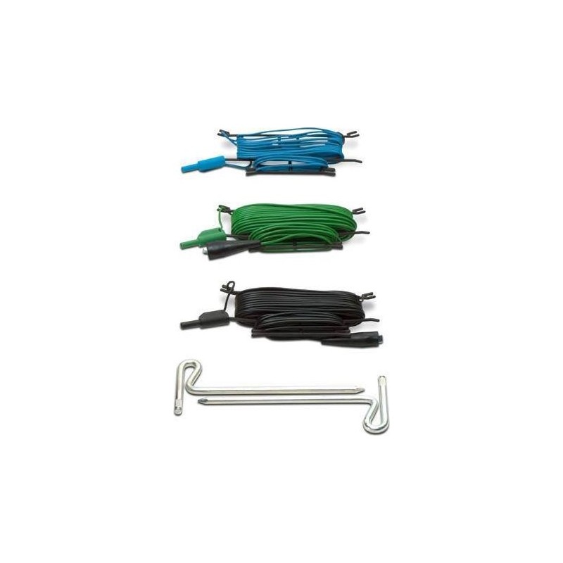 - Erdungsmessset: 2 Erdungsstäbe, 3 Messkabel (2 x 20 m, 1 x 4,5 m).