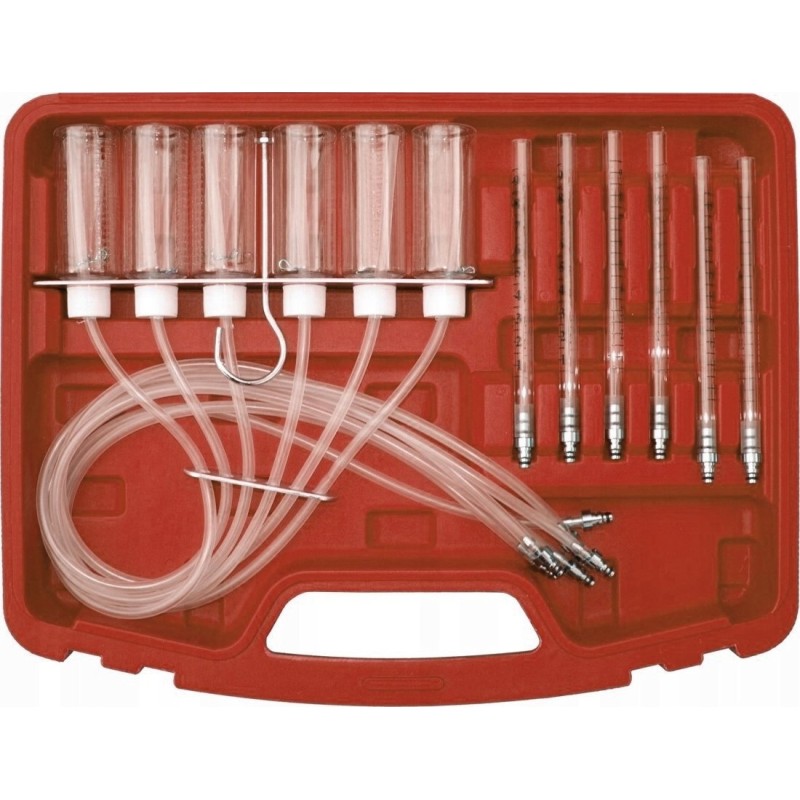 Das Set dient zur Messung der Kraftstoffmenge, die bei Dieselmotoren mit Selbstzündung (Common-Rail-System) in die Rücklaufleitung (Überlaufleitung) gelangt.