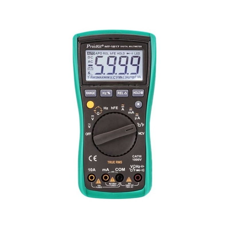 Das digitale Multimeter Pro'sKit MT-1217 ist ein fortschrittliches Messgerät, das sowohl Hobbybastler als auch Profis überzeugen wird. Dank moderner Funktionen und solider Verarbeitung ist es ein hervorragendes Werkzeug für präzise Messungen in verschiedenen Anwendungsbereichen, sowohl zu Hause als auch in der Werkstatt.