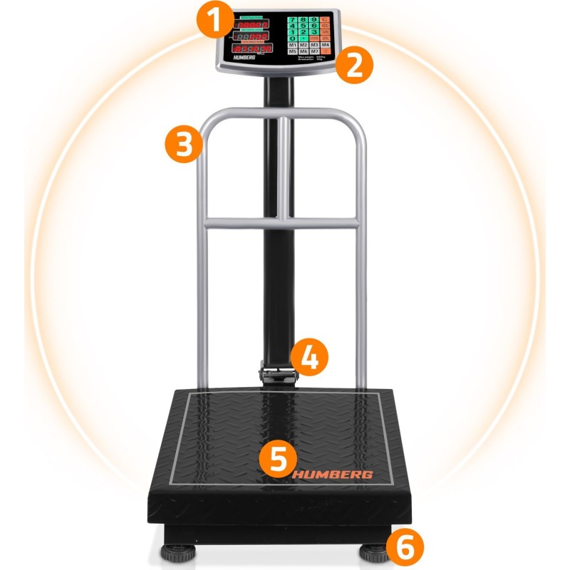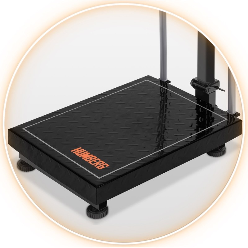 - Die hochwertige Stahlplattform ermöglicht das sichere Wiegen schwerer Lasten bis zu 300 kg ohne das Risiko von Beschädigungen oder Verformungen.