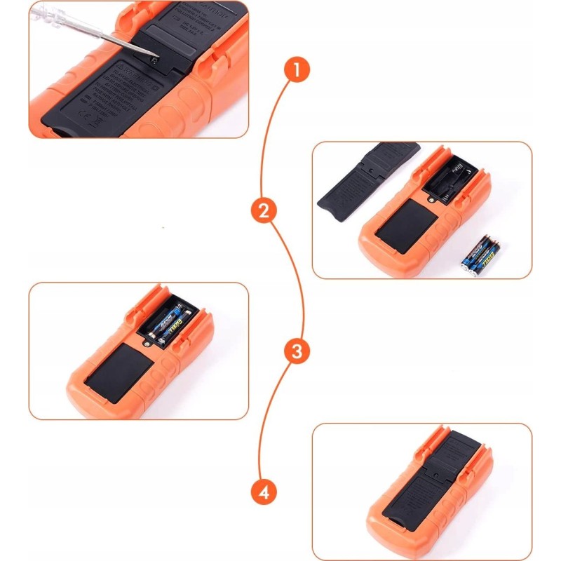 - Lieferumfang: Digitales Spannungsmessgerät, Originalverpackung, Messleitungen, Krokodilklemmen, 2x AAA-Batterien 1,5 V, Bedienungsanleitung