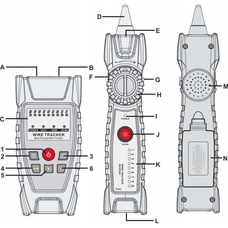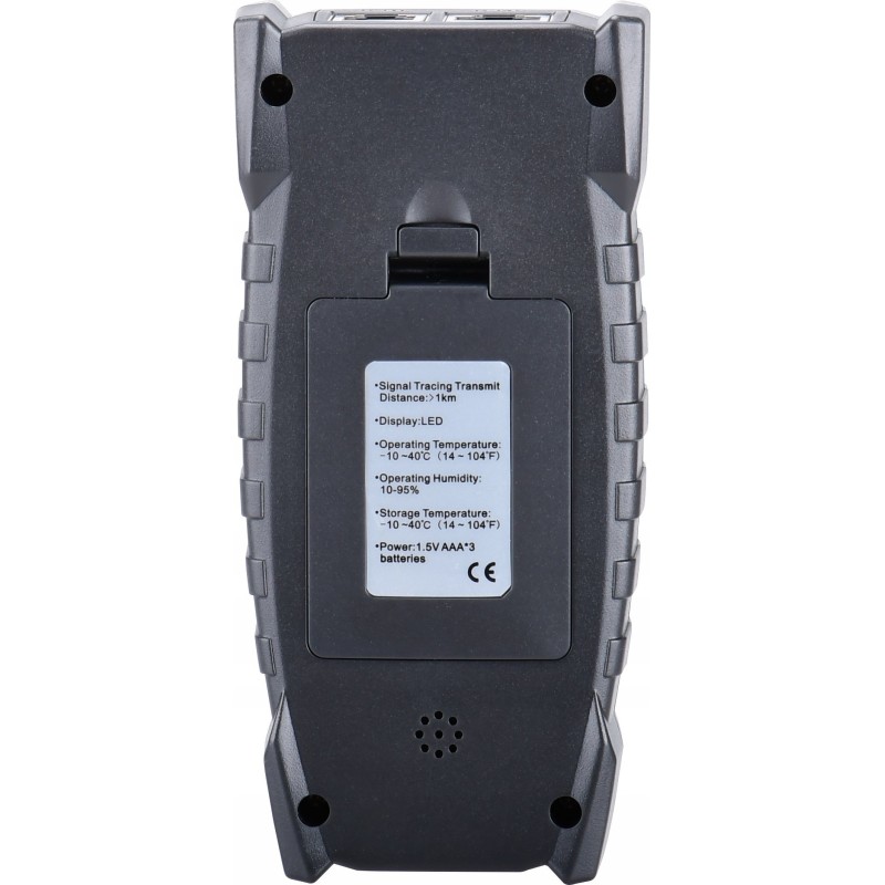 Das Gerät ist mit einer Mini-Taschenlampe ausgestattet, was besonders bei der Arbeit an schlecht beleuchteten Orten nützlich ist. Zusätzlich verfügt der Tester über eine Kopfhörerbuchse, die eine bequeme Überwachung des Leitungserkennungssignals ermöglicht.