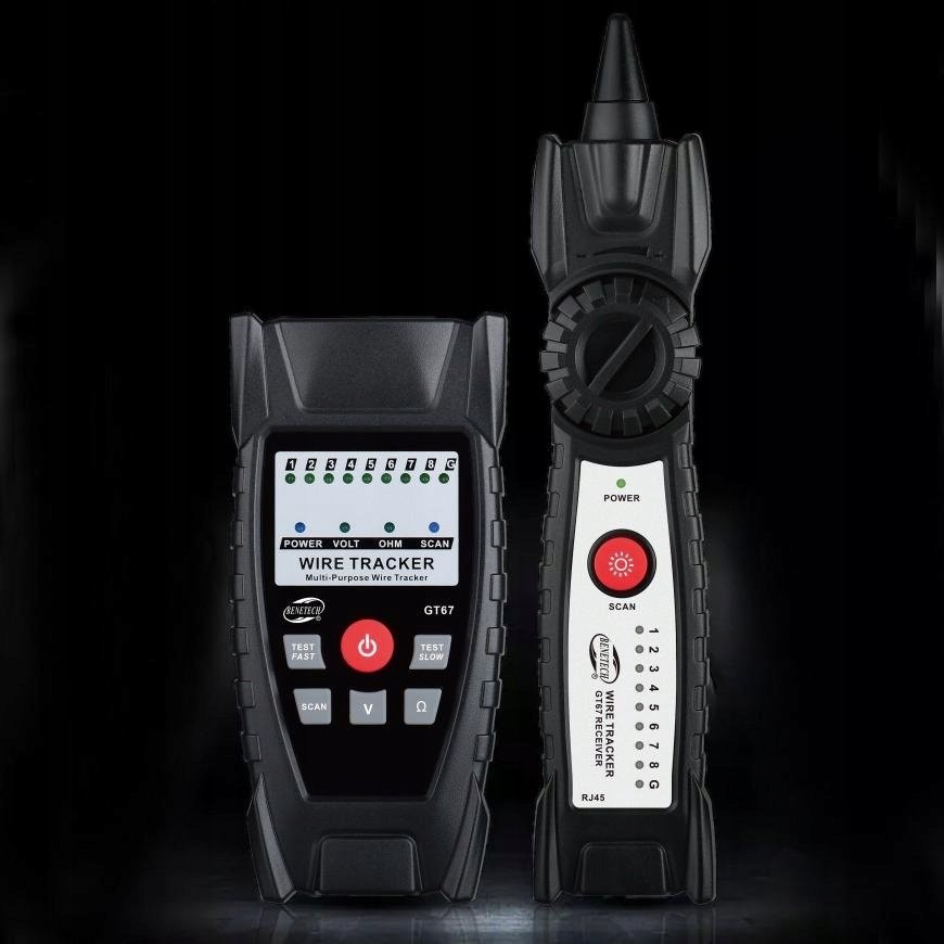 Der Kabelprüfer und Leitungssucher Tracker RJ45 GT67 ist ein modernes Gerät, das die Überprüfung von Netzwerkverkabelungen effektiv unterstützt. Dank seiner Fähigkeit, Leitungen zu identifizieren und zu lokalisieren, ohne deren Isolierung zu beschädigen, ist er ein hervorragendes Werkzeug für Monteure, Installateure und Techniker, die mit Niederspannungsleitungen arbeiten. Es bietet Funktionen wie die Verfolgung von Verkabelungen, die Überprüfung der Aderreihenfolge und die Fehlerdiagnose, was es zu einer unschätzbaren Hilfe im Arbeitsalltag macht.