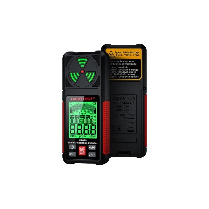- Echtzeit-Toleranz: › ± 15 % (unter 100 μSv/h); › ± 20 % (über 100 μSv/h, unter 1000 μSv/h); › ± 25 % (über 1000 μSv/h);