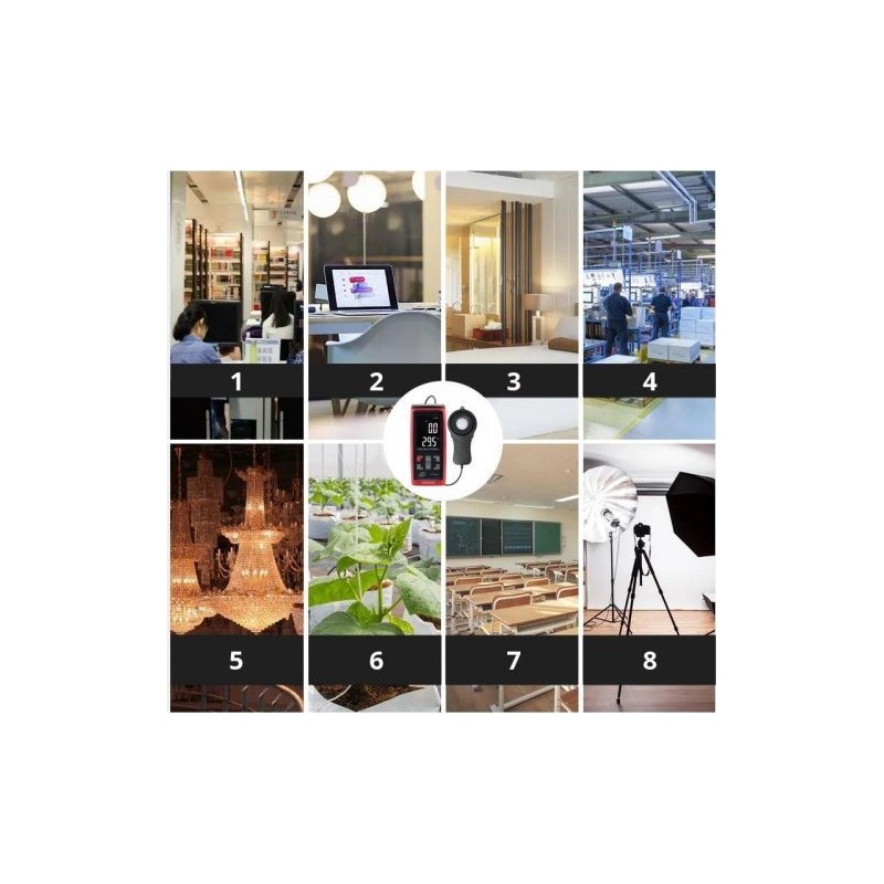 - Messbereich der Beleuchtungsstärke: 0,1 ~ 200.000 Lux (0,1 ~ 20.000 Fc),