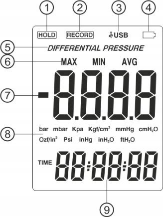 DIGITALES DIFFERENZDRUCKMESSGERÄT – DRUCKMESSER – UNTERDRUCKTESTER MIT USB-ANSCHLUSS, 100 kPa