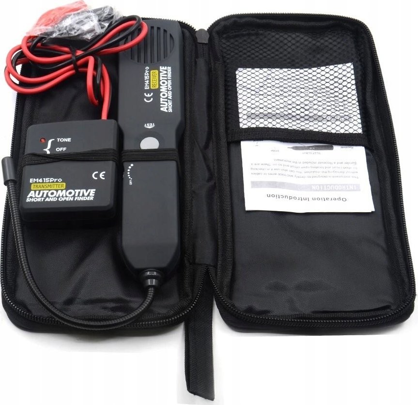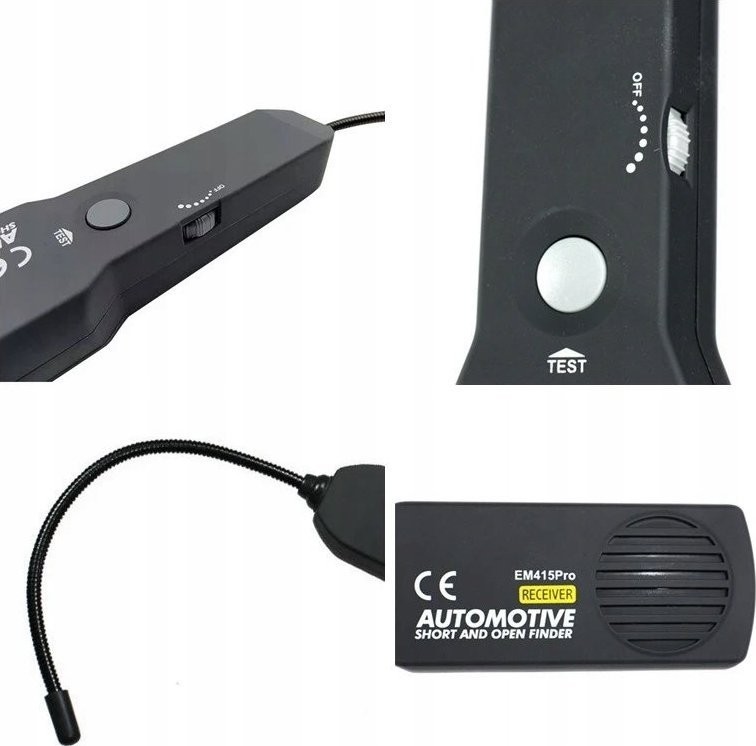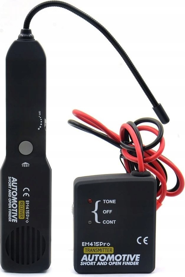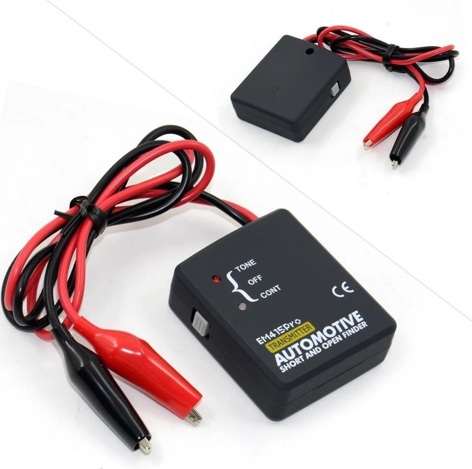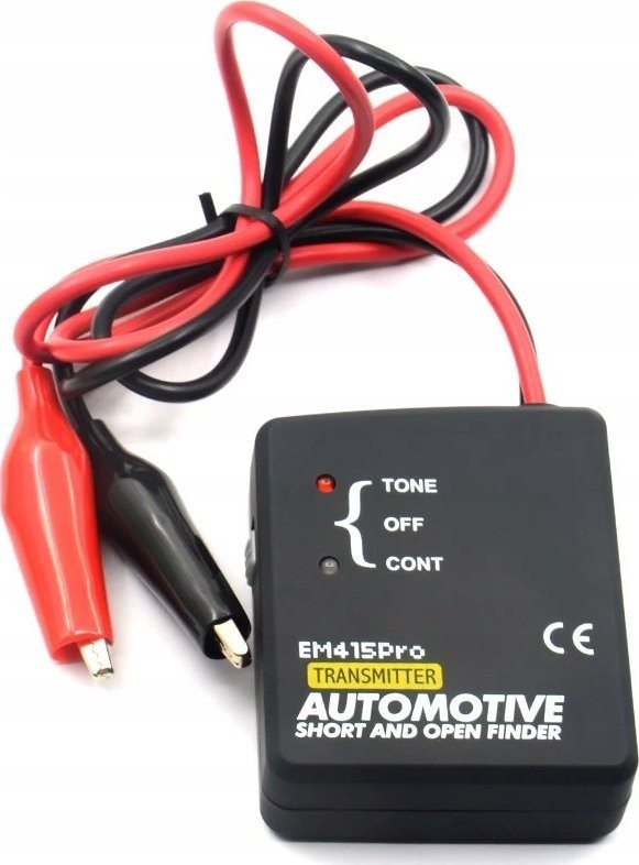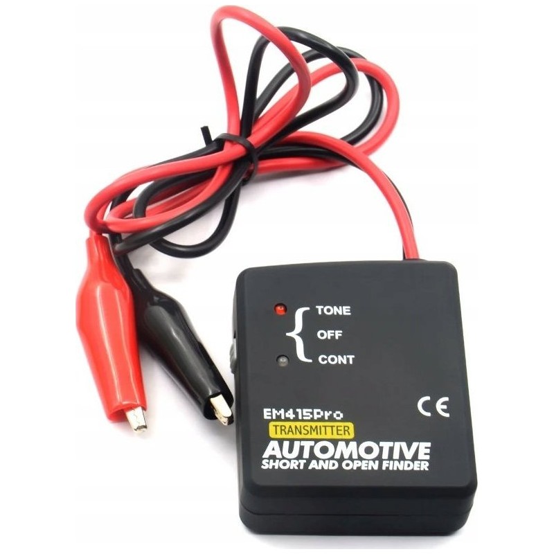 - Einfach an das verdächtige Kabel (rotes Kabel vom Sender) und an die Fahrzeugmasse anschließen (Minus – schwarzes Kabel am Sender) anschließen, den Schalter auf den TONE-Modus stellen und die Durchgängigkeit des Kabels verfolgen, indem man entlang des unter der Verkleidung verborgenen Kabels vorgeht; wenn das akustische Signal verschwindet, wurde ein Unterbrechung im Stromkreis gefunden