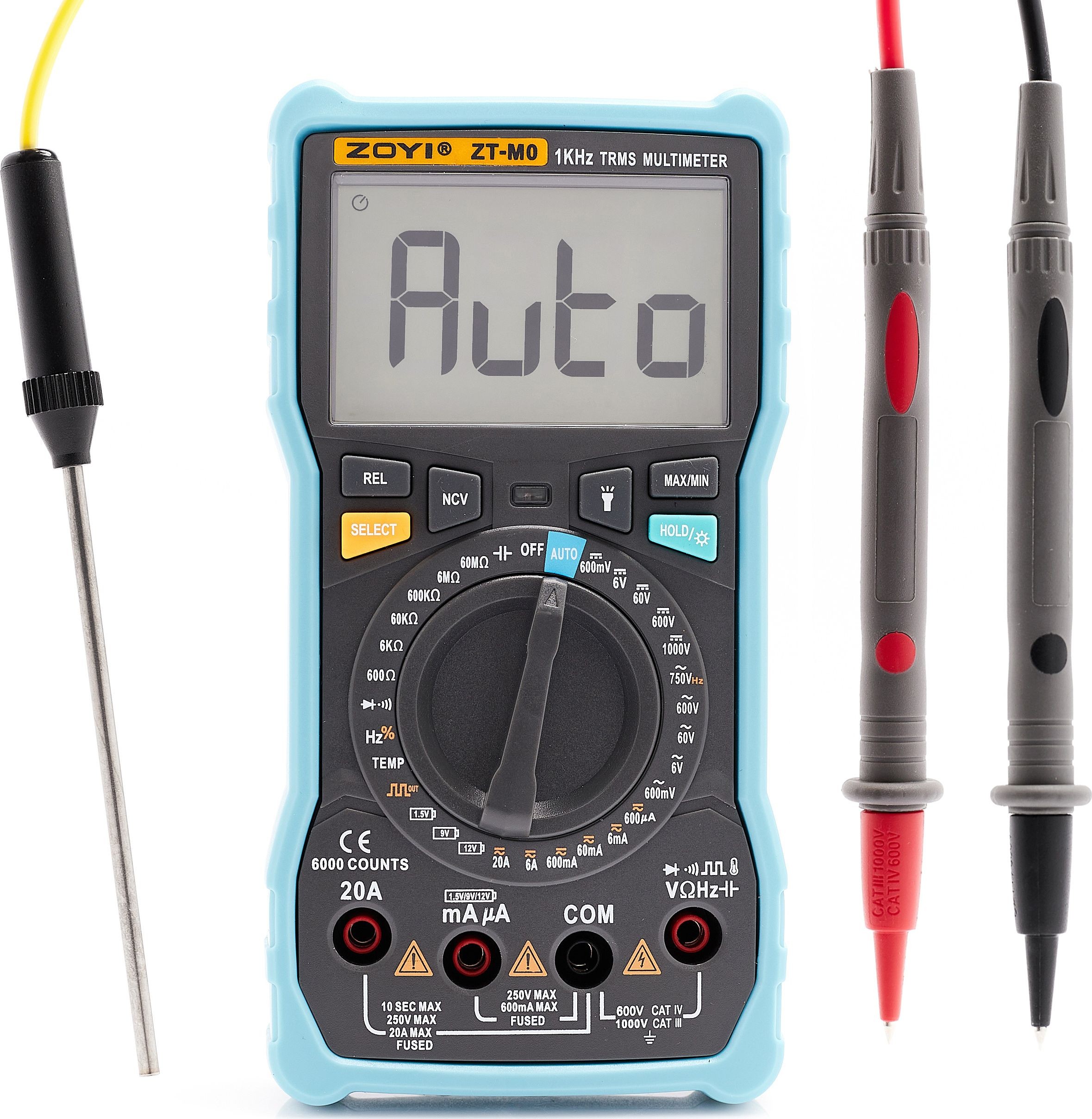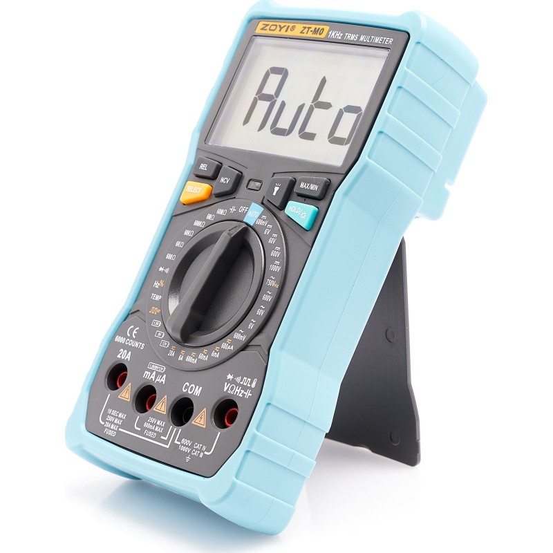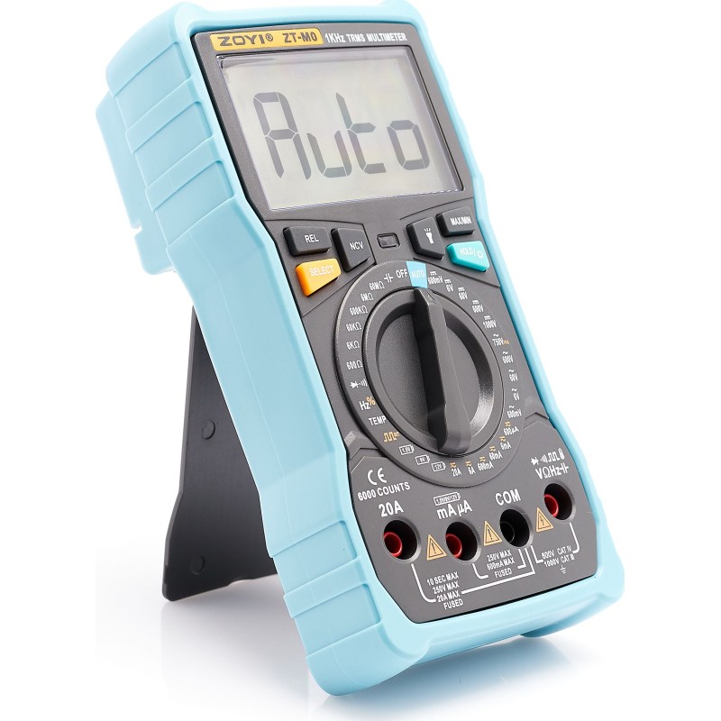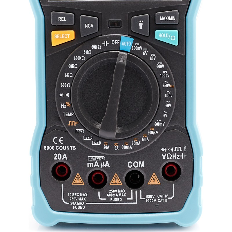 Das batteriebetriebene Digitalmultimeter ermöglicht die Messung des effektiven Wertes (RMS). Ausgestattet mit einem großen, gut lesbaren Display mit einer maximalen Anzeige von 6000 bietet es eine hervorragende Messauflösung in den meisten Messbereichen. Das Messgerät ermöglicht die Messung des TrueRMS-Effektivwerts von Wechselspannung und -strom (AC), Gleichstrom und -spannung (DC), Widerstand, Kondensatorkapazität, Temperatur, das Testen von Halbleiterdioden, einen Durchgangsprüfer (umgangssprachlich als Summer bezeichnet) sowie die Messung von Frequenz und Tastverhältnis. Das Gerät von hervorragender Qualität, hergestellt aus hochwertigen Materialien, ist ein unverzichtbarer Bestandteil jeder Werkstatt und jedes Autohauses sowie ein nützliches Messgerät für jeden Haushalt. Das Multimeter ist mit einer automatischen Bereichswahl ausgestattet, was die Messungen erleichtert und beschleunigt.