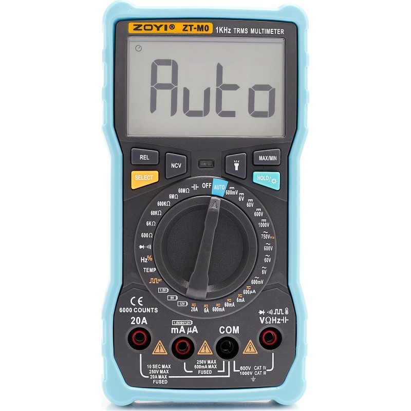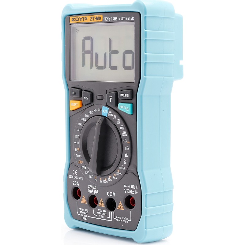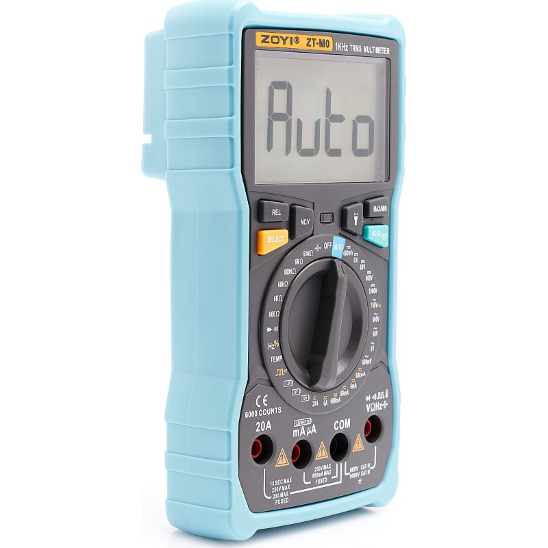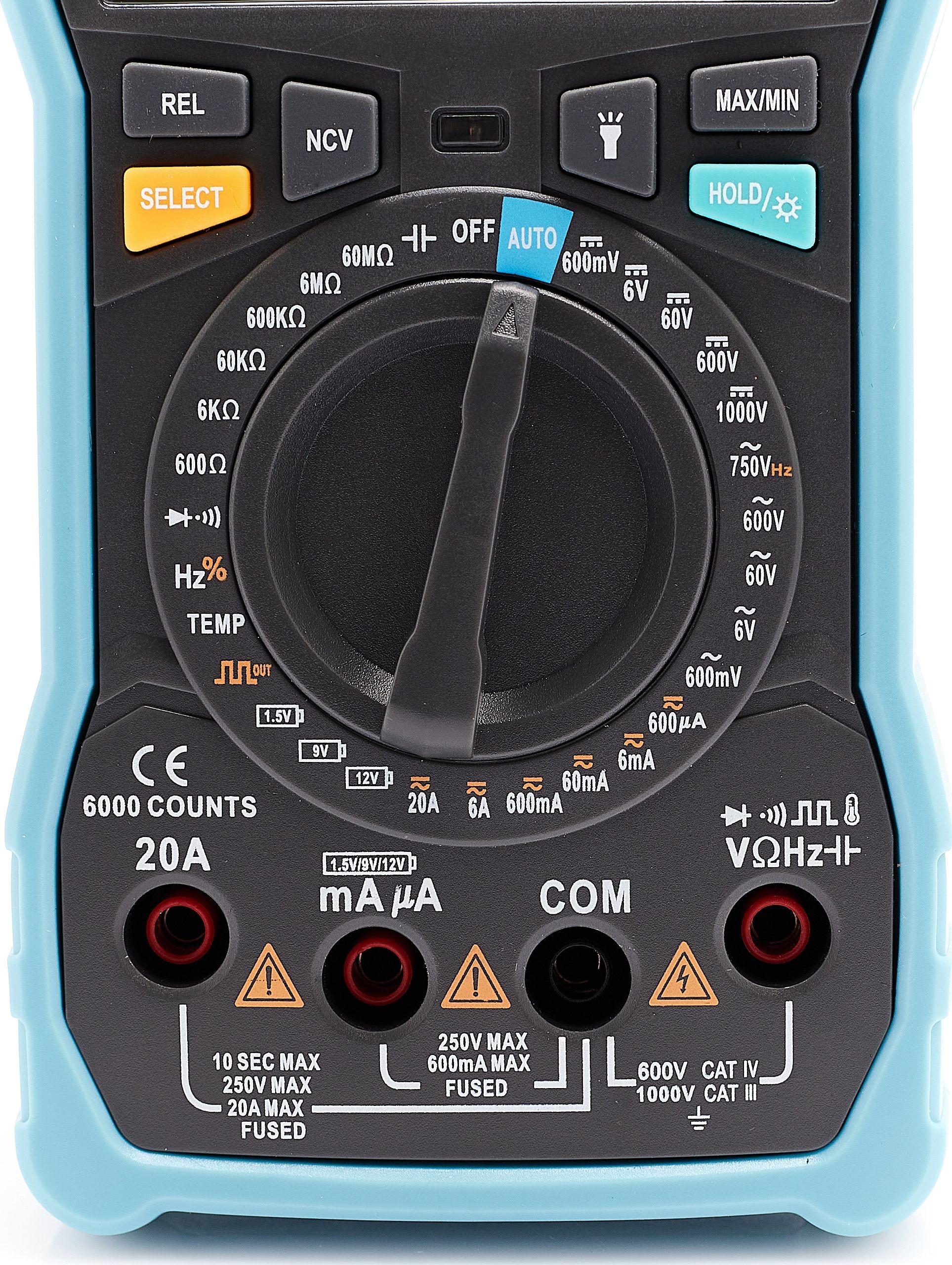 Das batteriebetriebene Digitalmultimeter ermöglicht die Messung des effektiven Wertes (RMS). Ausgestattet mit einem großen, gut lesbaren Display mit einer maximalen Anzeige von 6000 bietet es eine hervorragende Messauflösung in den meisten Messbereichen. Das Messgerät ermöglicht die Messung des TrueRMS-Effektivwerts von Wechselspannung und -strom (AC), Gleichstrom und -spannung (DC), Widerstand, Kondensatorkapazität, Temperatur, das Testen von Halbleiterdioden, einen Durchgangsprüfer (umgangssprachlich als Summer bezeichnet) sowie die Messung von Frequenz und Tastverhältnis. Das Gerät von hervorragender Qualität, hergestellt aus hochwertigen Materialien, ist ein unverzichtbarer Bestandteil jeder Werkstatt und jedes Autohauses sowie ein nützliches Messgerät für jeden Haushalt. Das Multimeter ist mit einer automatischen Bereichswahl ausgestattet, was die Messungen erleichtert und beschleunigt.